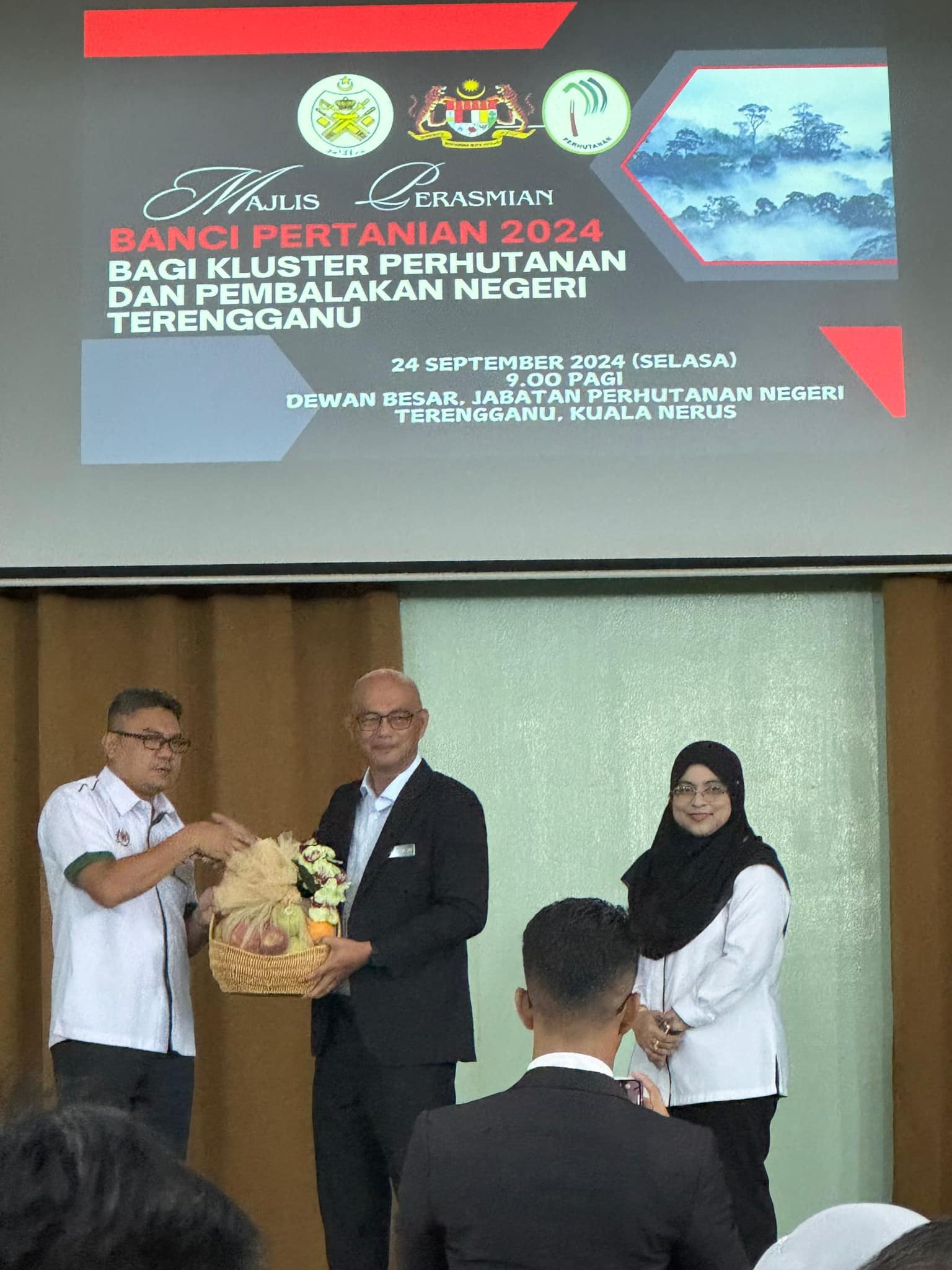 A 2024 Agricultural Census session, conducted by the Department of Statistics Malaysia (DOSM) for stakeholders directly involved in logging activities, was held at the JPNT Hall, Kuala Nerus, in collaboration with the Terengganu State Forestry Department (JPNT). This session plays a crucial role in assisting DOSM in collecting essential data for various analyses aimed at improving all aspects of the agriculture sector, particularly forestry. Cooperation from all forestry industry players is vital to ensure the success of this census. As a sustainable forest manager, KPKKT is committed to providing full support throughout the process. The program was officiated by Encik Mohd Radhi Chu bin Abdullah, Senior Director of the Forest Planning and Economics Division, Peninsular Malaysia Forestry Department.