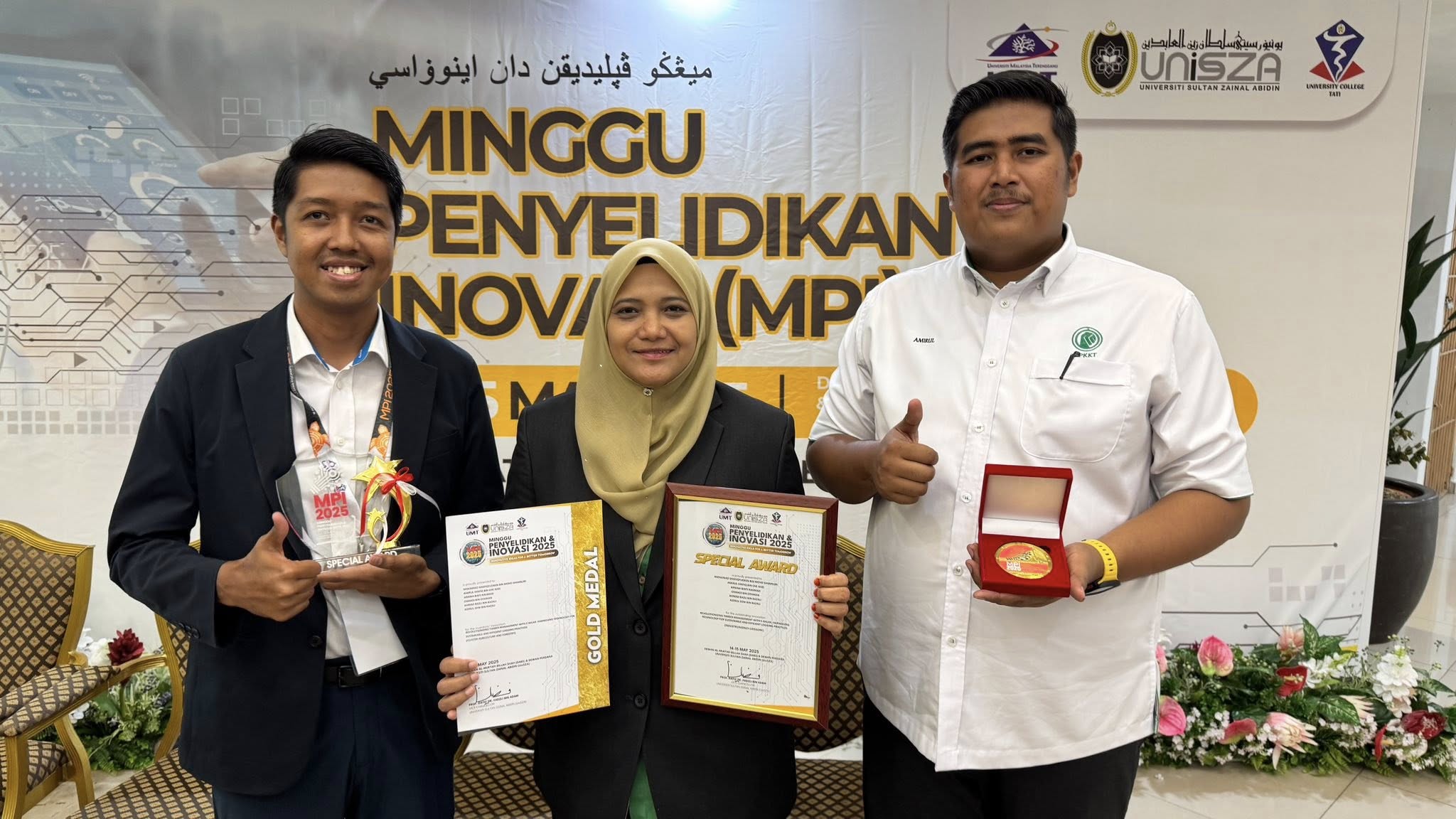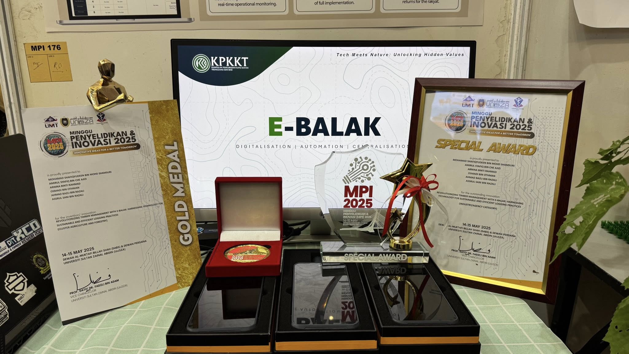 KPKKT made history today as its innovation titled "Revolutionising Timber Management through e-Balak : Harnessing Technology for Sustainable and Efficient Logging Practices" secured a Gold Medal in the Agriculture and Forestry Cluster, along with a Special Award under the Industry and Agency Category at the Research and Innovation Week (MPI) 2025, organized by Universiti Sultan Zainal Abidin (UniSZA). KPKKT was ranked in the top 10 out of 422 entries this year. These dual recognitions affirm the ongoing commitment of Kumpulan Pengurusan Kayu Kayan Terengganu Sdn. Bhd. (a subsidiary of Golden Pharos Berhad) in championing sustainable solutions within the forestry sector. Through e-Balak, advanced technology is holistically integrated with responsible forest management practices, setting a new benchmark for environmental conservation and operational efficiency.
