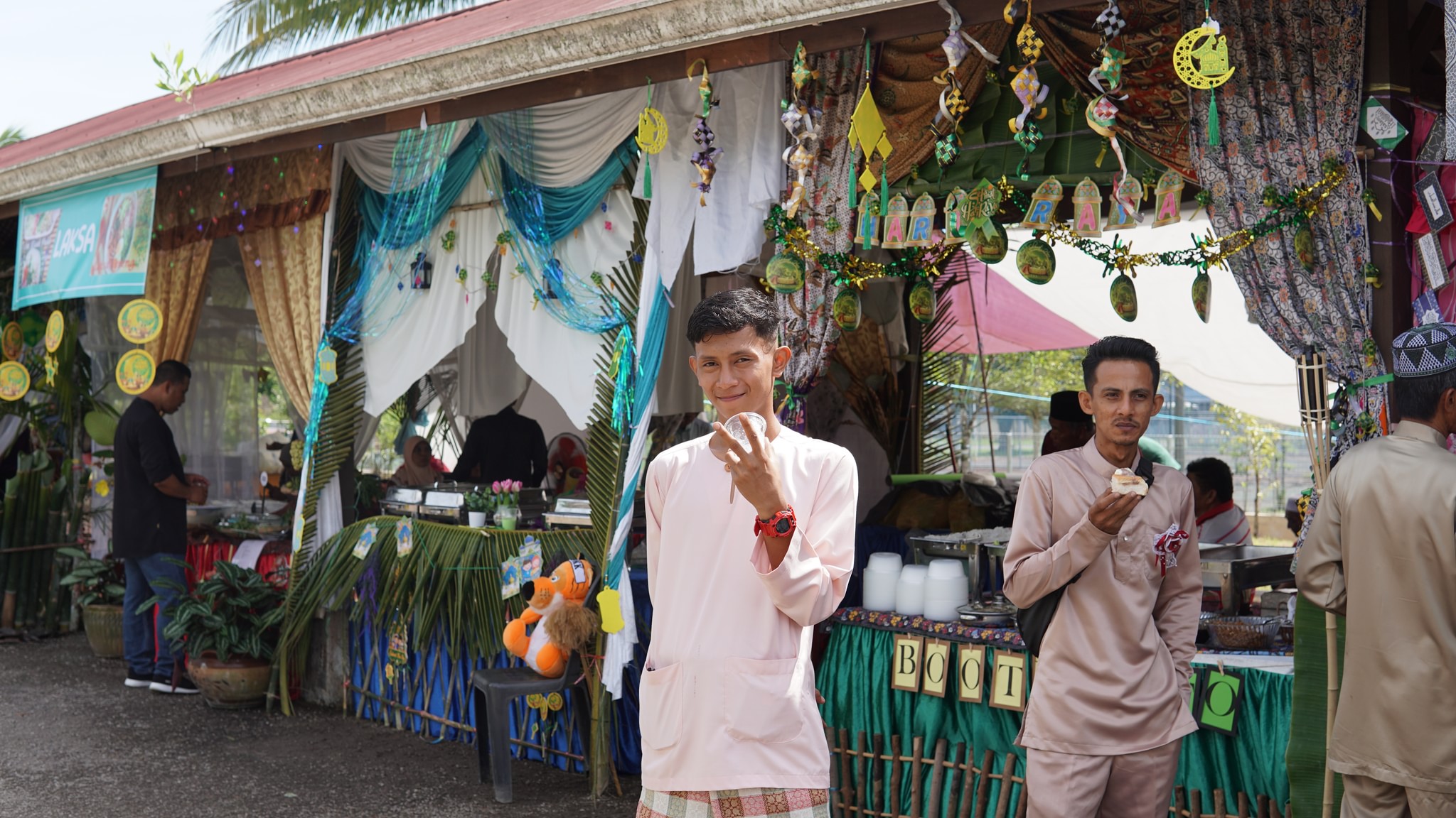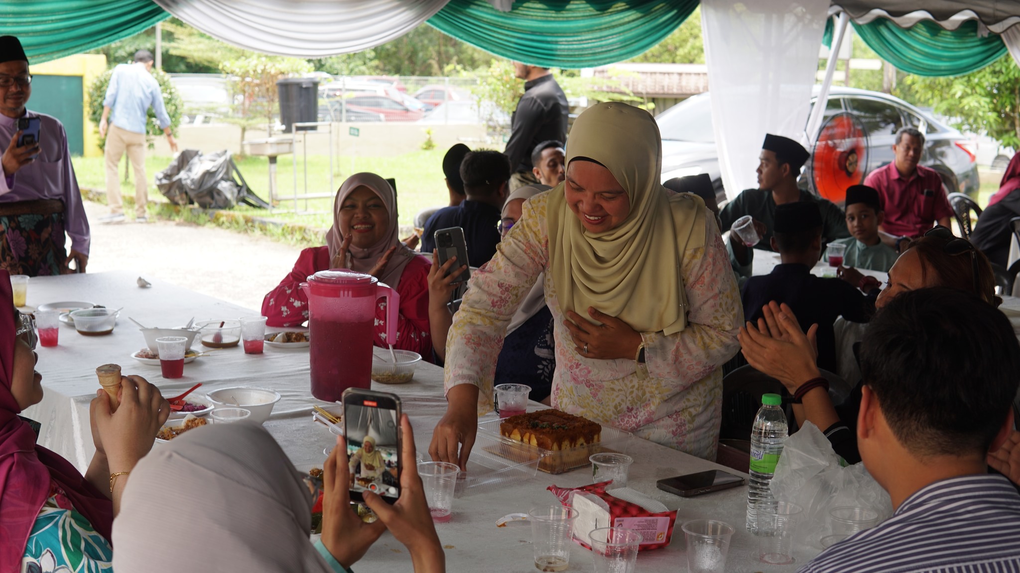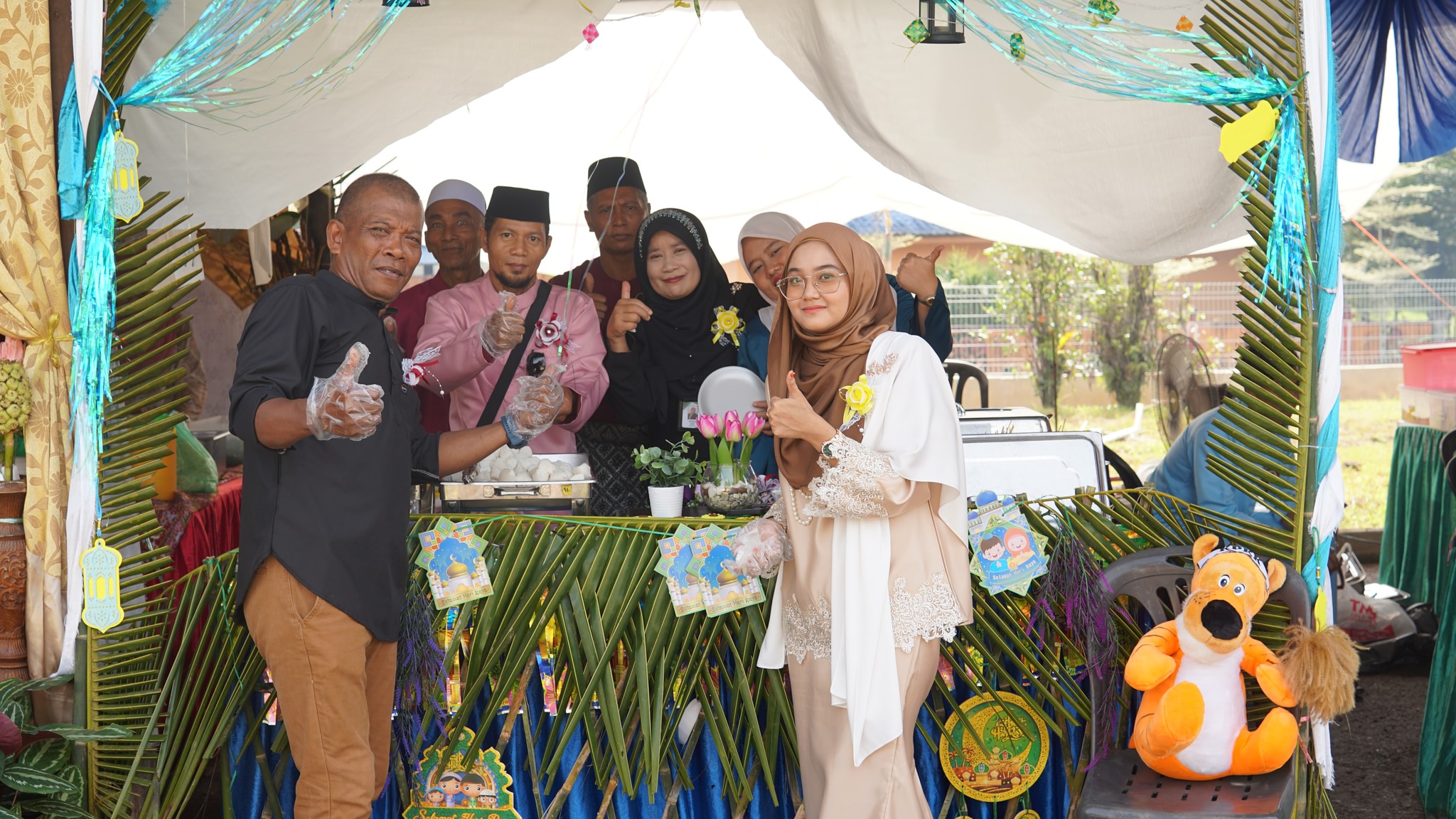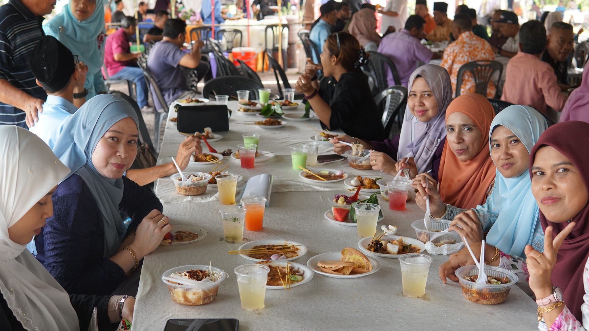 Terima Kasih tidak terhingga kepada semua tetamu yang hadir memeriahkan majlis ini dari pagi sehinggalah petang.Tetamu di hidangkan dengan pelbagai juadah Hari Raya seperti, nasi minyak, ketupat, lemang, rendang, laksa, mee soto, sate dan pelbagai pencuci mulut.Terima kasih juga kepada urusetia yang bertungkus lumus untuk menjayakan majlis ini, dengan menghiasi booth2 juadah, menyiapkan persiapan tempat untuk memastikan majlis berjalan lancar.