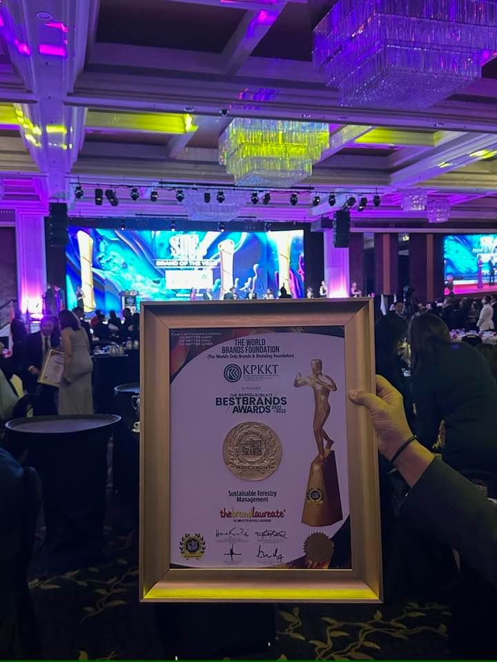 KPKKT was honored with the Best Brand Awards 2022–2023 in the category of Sustainable Forestry Management. The award was presented on 6 December 2023.This recognition is dedicated to all KPKKT employees and the GPB Group for their hard work throughout the year in safeguarding forest sustainability to the fullest extent, while meeting the demands of the timber industry through the implementation of the Selective Management System.